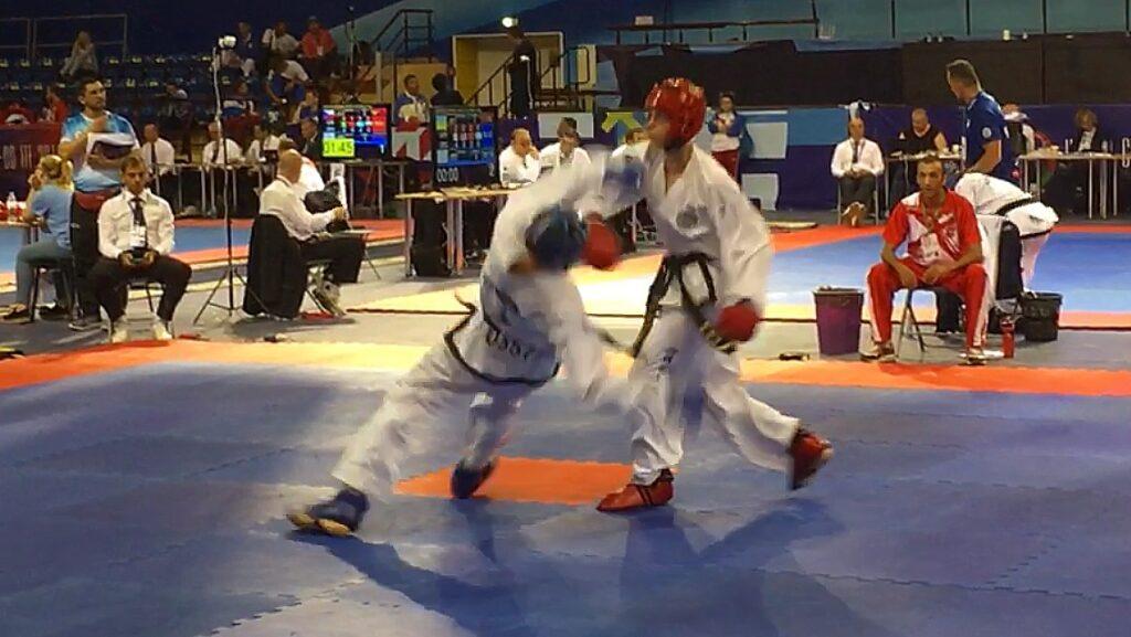 I was drawn against my old friend Konrad Kowalczyk from Spain. I had lost to Konrad in the -80kg Sparring Final at the English Open earlier in the year and new that it was going to be physically tough fight. It definitely was. By the end we both felt like we had been in a fight, but Konrad got the better of me again. Konrad went on to win the silver after two more gruelling contests.